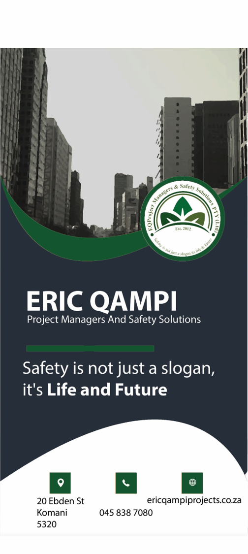 EQPROJECT MANAGERS & SAFETY SOLUTIONS is essentially a growing enterprise providing services in construction industry. We offer our services to the following entities: Contractors, Municipalities, Consultants, Private Companies, State Owned Enterprises (SOE) andProvincial Government Departments. Our main focus is currently on construction industry. Consulting companies normally appoint us as Occupational Health and Safety Agents where we get involve in the following activities: Application for construction work permit as per the requirements of Construction Regulation (3), Compilation of Occupational Health and Safety Specification, Compilation of Baseline Risk Assessment, Evaluation and Approval of Occupational Health and Safety Plans, conducting Monthly Health and Safety Audits as well as facilitating and training employees on safe work procedures.